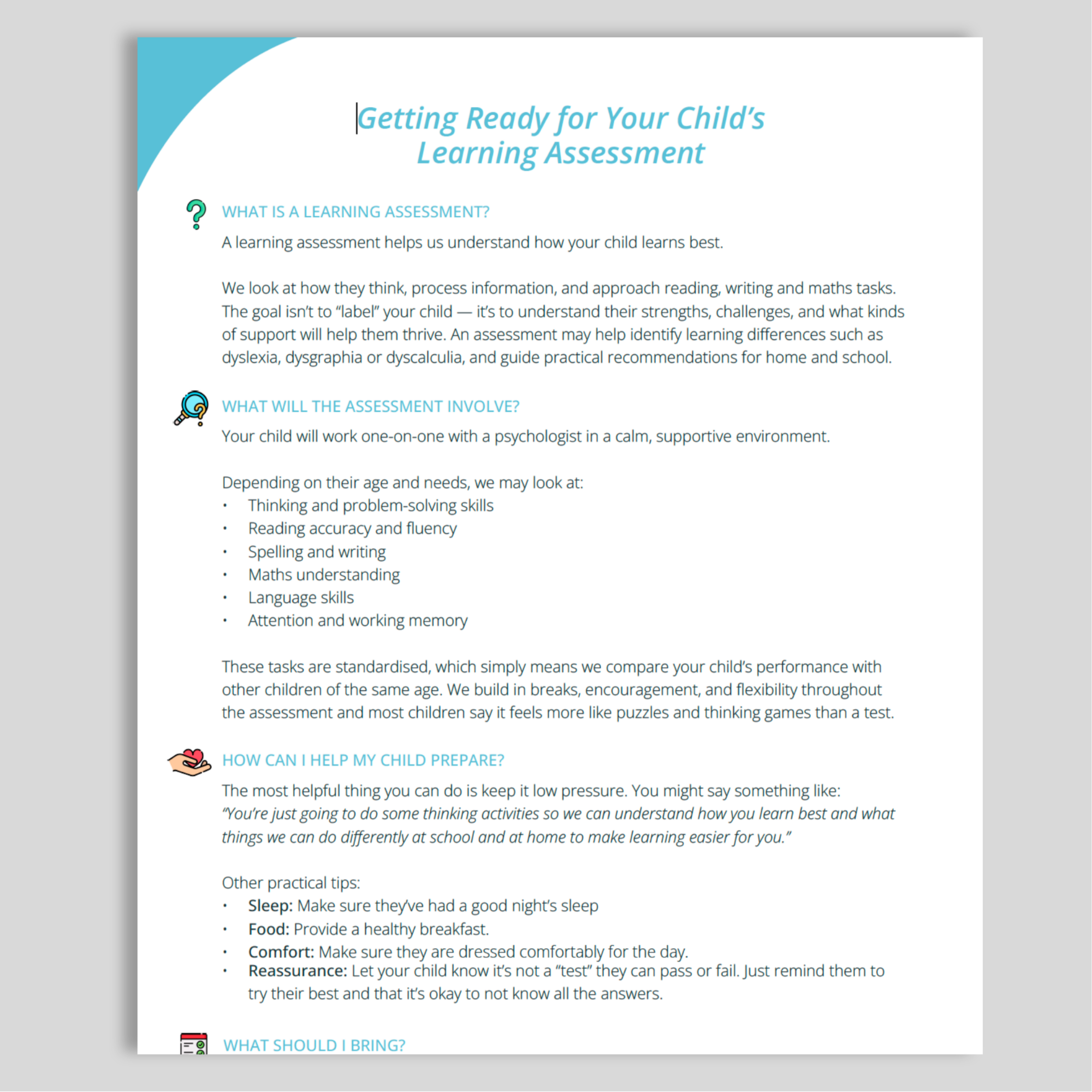 The resources available here have been developed to support psychologists conducting assessments for Specific Learning Disorders. They bring together practical tools, clinical frameworks, and parent resources designed to support clear thinking throughout the assessment process and clear communication with families.